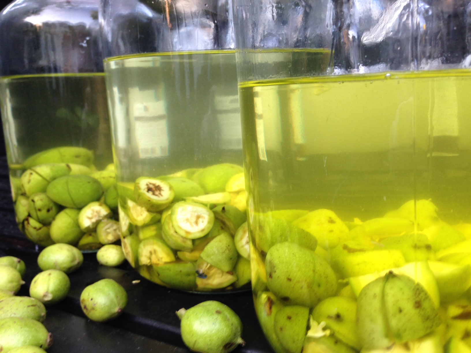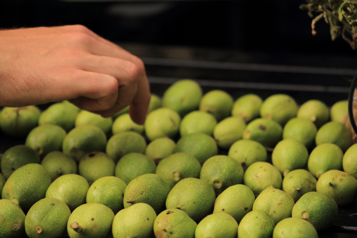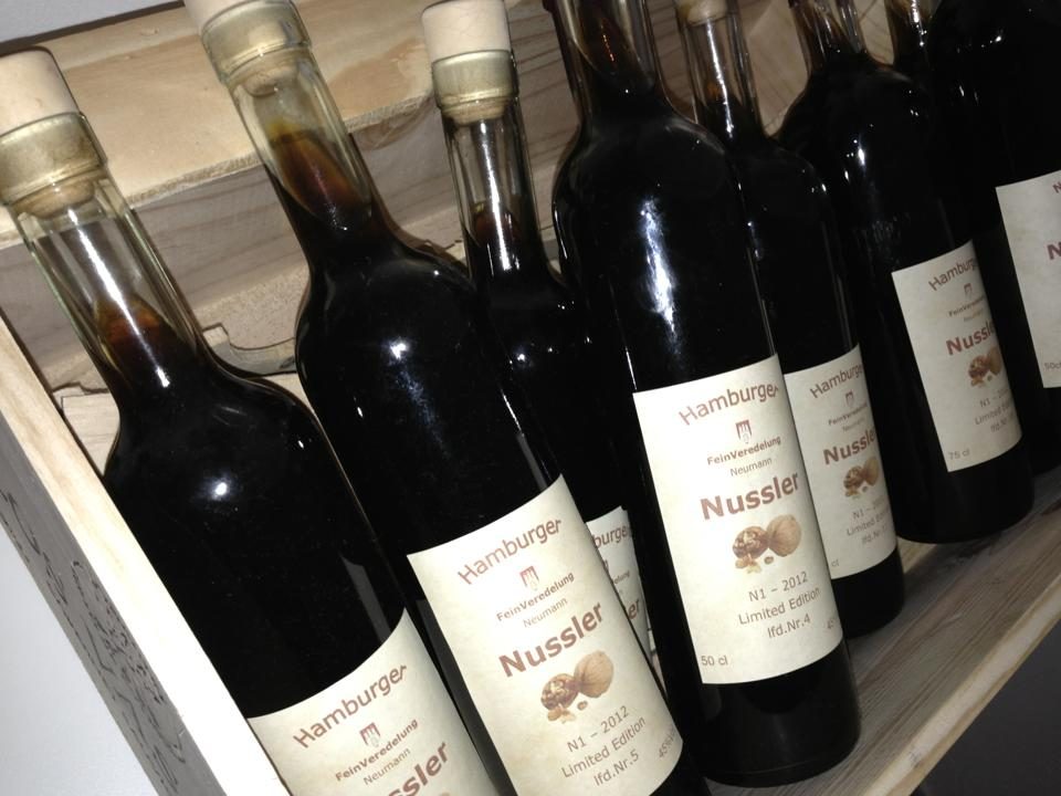 Echte Hamburger Walnüsse ( von Fritz) geben diesem Schnaps gemeinsam mit Mogenzucker – einer speziellen angemachten Zuckersorte – Sternanis, Zimt und Vanilleschote seinen unvergleichlichen Geschmack. Die Walnüsse werden hierbei im grünen Zustand – also zu der Zeit, in der die Walnuss innen noch ölig ist – zugegeben. Dieses ist traditionell in Südtirol zum Johannestag der Fall. In Hamburg warten wir ungefähr drei- bis vier Wochen länger auf die richtige Walnusreife, was der klimatischen „Sonderstellung“ Hamburgs geschuldet ist