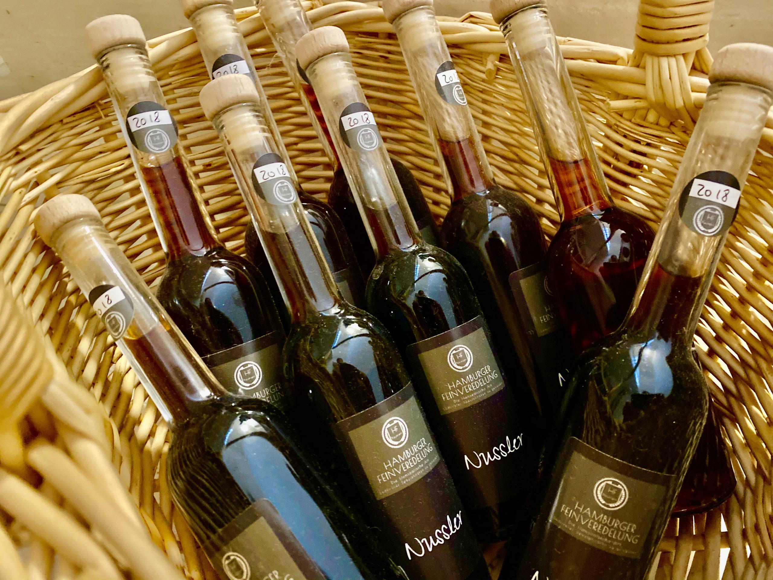 Auch in diesen surrealen Zeiten…..bei diesem Alkoholgehalt schwimmen die Nüsse absolute virenfrei. Unser Endprodukt wird auch 2020 zur inneren Anwendung empfohlen. Nicht als viruzid, sondern als „äußerst lecker“! So etwas haben wir wettertechnisch noch nie in Hamburg erlebt. Fast die gesamte Zeit, die unsere Nüsse im Treberbad verbracht haben, ballerte die Sonne auf die Ansatzgläser und bei… Bei schon fast Südtiroler Temperaturen in Hamburg wurde heute die Abfüllung abgeschlossen. Jeder einzelne Tropfen unseres 2017er Nussler ist nun auf Flaschen gezogen und diese sind in den Keller… Heute war es soweit. Die an diesem Wochenende geernteten Nüssen durften Schwimmen gehen. Dieses Jahr scheinen die Walnüsse nicht besonders schwer zu tragen. Sowohl die Anzahl der Nüsse am… Es ist vollbracht: Voller Hoffnung, dass der 2016er Nussler trotz der schmerzlichst vermissten Sonne, doch ein guter Jahrgang geworden ist, sind nun alle Flaschen abgefüllt. Wir freuen uns schon,… In diesem Jahr spielt – nicht nur in Hamburg – das Wetter etwas verrückt. Aufgrund der sehr warmen und feuchten Witterung der letzten Wochen sind unsere Nüsse am Baum… Das Wetter in Hamburg ist eben doch etwas unbeständig. Da brauchte es ein wenig länger, bis die notwendigen Sonnetage erreicht sind. Nun ist es aber soweit. Die 2015er sind… Es ist vollbracht. Der Hamburger Nussler 2014 hat es in seine Flaschen geschafft. Diese stehen nun dunkel und sicher und sorgen in den nächsten vier Monaten für Ruhe und… Etwas früher als geplant hat heute, mit tatkräftiger Unterstützung des Nachbar-Jungen, der sich sein Taschengeld aufgebessert hat, die Ernte der grünen Nuß begonnen. So konnten die Gläser für die… Nach reichlich Feuchtigkeit während der Eisheiligen, erstrahlt der Walnussbaum nun bei sommerlichen 23 Grad in der Hamburger Sonne. Und die Aussichten für die kommende Woche sind hervorragend. Da können… Hamburger Nussler in der 0,2 Liter Flasche Hamburger Nussler in der 0,5 Liter Flasche Hamburger HaselNußler in der 0,75 Liter Flasche Hamburger Kümmel in der 0,75 Liter Flasche Hamburger… Es ist soweit. Der Jahrgang 2013 von unserem Hamburger Nussler, der wirklich hervorragend von der tollen norddeutschen Sonne verwöhnt wurde, ist in Flaschen abgefüllt. Nun muss der Nussler, wie… Wolfgang hat in der Nähe von Pattensen eine Allee gefunden, die hunderte Meter weit mit Walnussbäumen gesäumt ist. Den Tipp hat er vom Bürgermeister. Also sind wir mit einer… Ja, was soll man sagen? Das Hamburger Wetter hält sich einfach nicht an den alten Kalender. Traditionell erntet man eigentlich am Johannestag die noch grünen Nüsse, die dann schön… Es ist soweit. Nach einigen Experimenten an der Rezeptur ist nun der erste Haselnussler N1 probiert. Kräftig nach Haselnuss schmeckend. Leicht scharfsüsslich. Etwas herber als der klassische Nussler. Ein… Die ersten Ergebnisse und Erfahrungen, die wir mit der Herstellung des Haselnussler machen durften, entsprachen leider nicht unseren Qualitätsanansprüchen. Die ersten Verkostungen haben uns veranlasst, die Rezeptur noch einmal… Endlich – Heiligabend – Das Warten hat ein Ende. Nach einem schmackhaften Fondueabend wird am Heiligabend traditionell der erste Nussler des neuen Jahrgangs verkostet. Wir waren schon sehr gespannt…. Skiurlaub – Saalbach. Weit und breit kein echter Nussler zu bekommen. Doch zur Überraschung hat so ziemlich jeder Wirt eine Haselnuss im Angebot. Passt ja auch zur Weihnachtszeit. Also… Nun haben die Flaschen schon mehr als zwei Monate Ruhe. Für einige Minuten mussten wir die Ruhe des Nusslers noch einmal stören – Denn die Etiketten wollen geklebt werden…. Anfang Oktober. Das Wetter in Hamburg ist mies. Also machen wir uns spontan auf dem Weg in die Sonne. Wir landen in Lana in Südtirol. Wunderschönes Wetter – und…Blog Posts